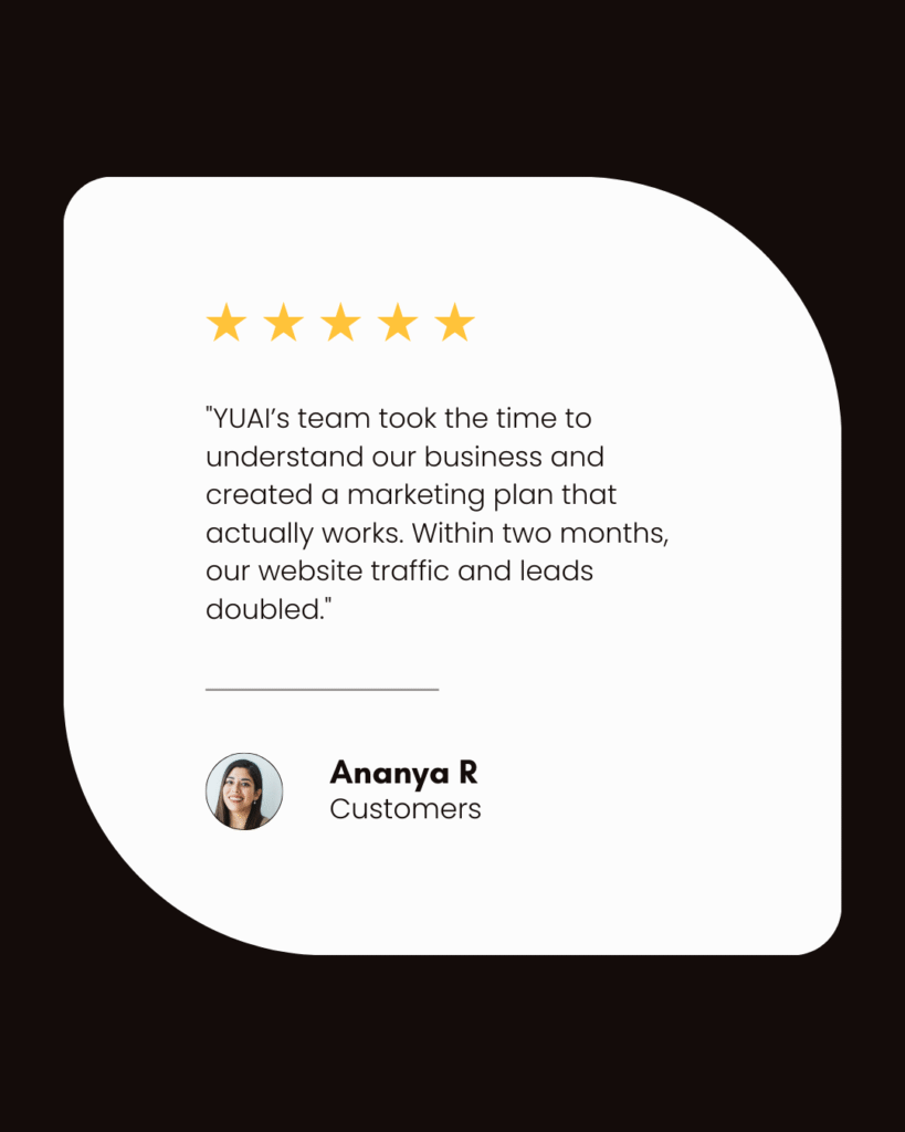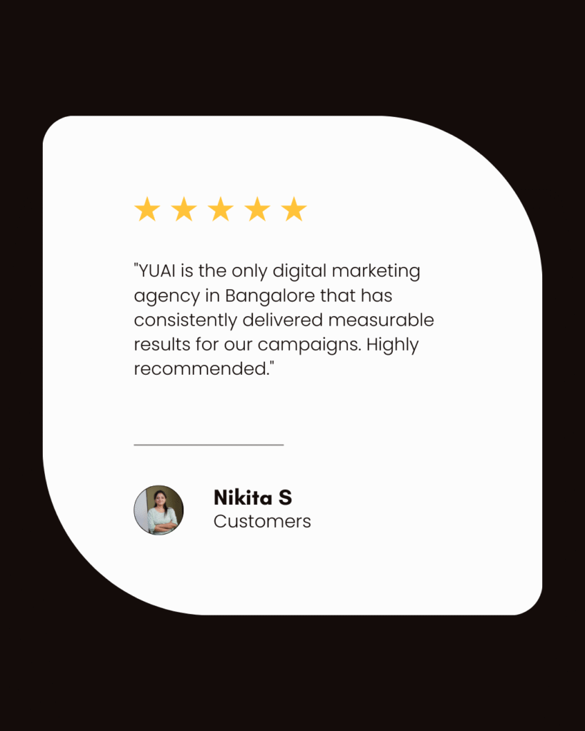 YUAI’s reputation as a Digital Marketing Agency in Bangalore comes from helping businesses increase their reach, revenue, and relevance — all while maintaining a strong focus on long-term growth. With us, you get a partner who is as invested in your success as you are.