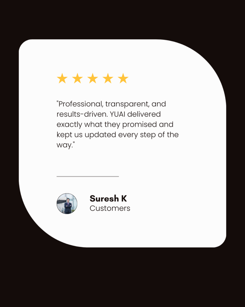 At YUAI, we believe in results you can see and measure. Our track record as a trusted Digital Marketing Agency in Bangalore comes from designing campaigns that deliver clear, quantifiable growth — whether it’s increased leads, higher conversion rates, or improved brand visibility.
