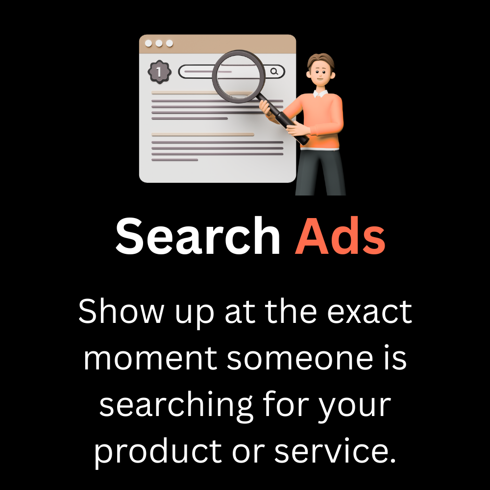 Search Ads – Show up at the exact moment someone is searching for your product or service.