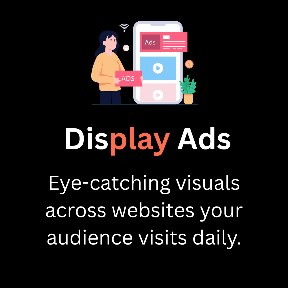 Display Ads – Eye-catching visuals across websites your audience visits daily.